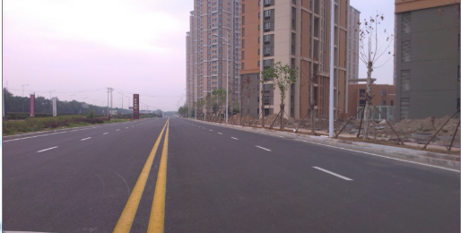 4、縱A3號路(K0+000~ K0+512.13)長512米,寬16米,面積8100㎡;人行道寬1.8米,面積1800㎡。